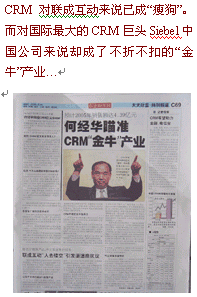 而此前Siebel在中國市場一直采取"大鯨不游淺水"策略,保持低調,冷眼旁觀,并未投入大量人力財力在中國市場,此次巨資籠絡何經華,是否Siebel認為中國CRM這個"淺池子"開始加深了?