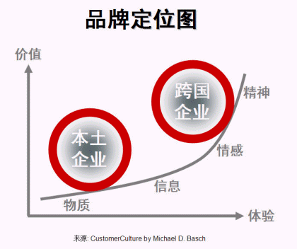 客戶體驗(yàn)是客戶關(guān)系管理的重要組成部分。根據(jù)過去數(shù)年評(píng)選中國最佳CRM實(shí)施企業(yè)所作的分析,本土與外資企業(yè)在企業(yè)體檢中各項(xiàng)主要評(píng)分中有較大差距,其中之一是客戶體驗(yàn)(-7.1分,見圖一、本土與跨國企業(yè)之差距)。本土企業(yè)若只提供低層次的客戶體驗(yàn),只為客戶帶來低價(jià)值,也只能打價(jià)格戰(zhàn)、做代工,很難做大做強(qiáng)打通全球市場(chǎng)。做好品牌,其實(shí)再深入一點(diǎn)說就是要做好客戶體驗(yàn),價(jià)值(價(jià)格)才會(huì)上去(見圖二、品牌定位)。