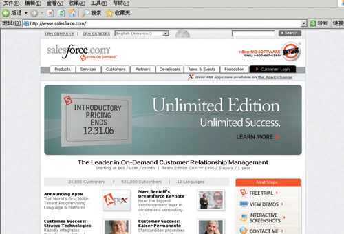 三大領(lǐng)域領(lǐng)先者 在線(xiàn)租用CRM時(shí)代已到 2006-11-08 |