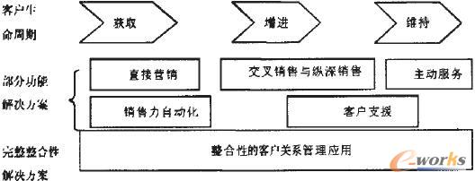 早在1984年,lves和Learmonth提出了客戶生命周期(CRLC)的概念,旨在客戶生命周期的不同階段支持并滿足客戶的所有需求,被視為CRM思想的萌芽。在20世紀90年代初。最初的CRM應用投入使用,如銷售隊伍自動化(SFA)和客戶服務與支持(css)。這些基于部門的獨立解決方案增強特定的業(yè)務流程,但卻忽略了從整體角度對企業(yè)與客戶之間關系的思考。