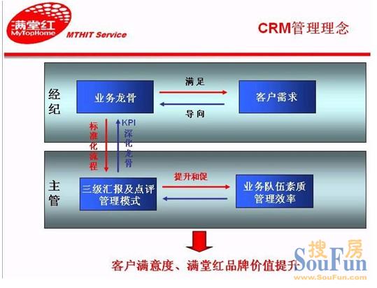 CRM系統(tǒng)(CustomerRelationship Management)客戶(hù)關(guān)系管理,強(qiáng)調(diào)建立以客戶(hù)為中心的現(xiàn)代企業(yè),以客戶(hù)價(jià)值來(lái)判定市場(chǎng)需求為導(dǎo)向的企業(yè)新型管理運(yùn)用軟件,滿(mǎn)堂紅企業(yè)管理中心于今年初開(kāi)發(fā)了CRM二手房地產(chǎn)管理系統(tǒng)。圍繞提升企業(yè)利潤(rùn)和客戶(hù)滿(mǎn)意度而設(shè)計(jì)的經(jīng)營(yíng)策略,以信息技術(shù)為手段,對(duì)業(yè)務(wù)管理和工作流程進(jìn)行設(shè)計(jì)和重組,實(shí)現(xiàn)經(jīng)營(yíng)策略和新型管理理念的電子工具。圍繞業(yè)務(wù)建立標(biāo)準(zhǔn)化的業(yè)務(wù)流程,高效滿(mǎn)足客戶(hù)需求,從而不斷提升客戶(hù)滿(mǎn)意度及企業(yè)核心競(jìng)爭(zhēng)力。搜房二手房網(wǎng)