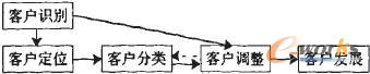 筆者認(rèn)為,客戶識別是貫穿整個客戶關(guān)系管理運(yùn)作流程的一條主線,也是企業(yè)判斷是否進(jìn)行以及如何進(jìn)行客戶獲取、客戶保持、關(guān)系終止活動的根本依據(jù)。這里筆者把客戶識別可以分為定位客戶、客戶分類、調(diào)整客戶和發(fā)展客戶幾個步驟(見圖1)。
