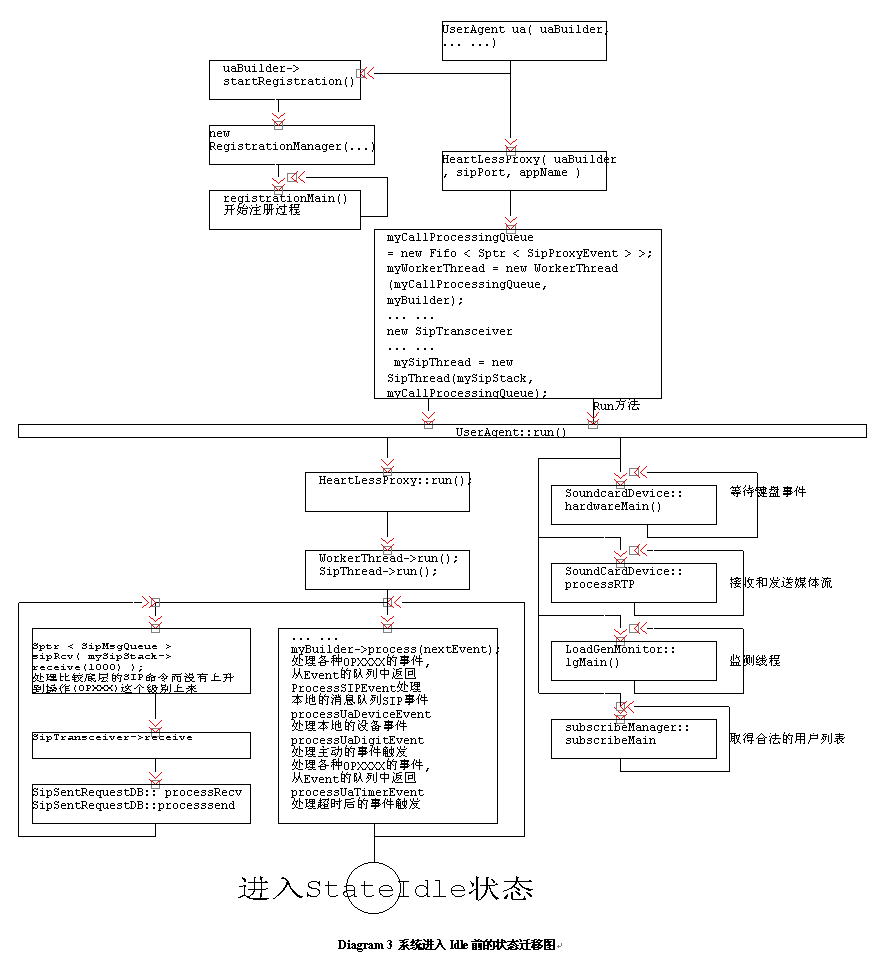 構建User Agent的工作已經完畢,現(xiàn)在應該讓調用它的Run方法了;從下面的程序可以看到,Run方法的調用,讓整個程序進入一種"Idle"的狀態(tài),等待命令輸入和狀態(tài)的產生,這個過程我們可以看到在Ua.CXX的Main程序中調用(ua.run())。
