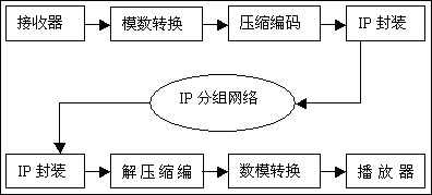 語音信號進(jìn)行數(shù)字編碼以后,下一步就要對語音包以特定的幀長進(jìn)行壓縮編碼。編碼后,壓縮的幀合成一個壓縮的語音包送入網(wǎng)絡(luò)處理器。網(wǎng)絡(luò)處理器為語音添加包頭、時標(biāo)和其它信息后通過IP網(wǎng)絡(luò)傳送到另一端。語音網(wǎng)絡(luò)簡單地建立通信端點(diǎn)間的物理連接,并在端點(diǎn)間傳輸編碼信號。IP網(wǎng)絡(luò)不會形成連接,而要求把數(shù)據(jù)放在可變長的數(shù)據(jù)報(bào)或分組中,然后給每個數(shù)據(jù)報(bào)附帶尋址和控制信息,并通過網(wǎng)絡(luò)發(fā)送。