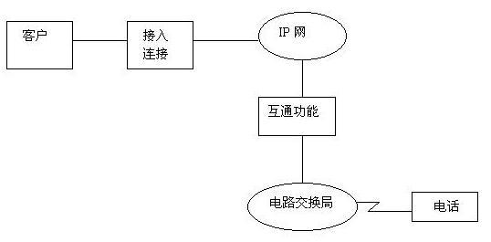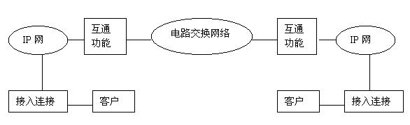 第三階段的重點是電路交換網(wǎng)通過IP網(wǎng)至電路交換網(wǎng),即實現(xiàn)以Internet作為傳送手段進(jìn)行通信的目的,其示意圖如圖所示。