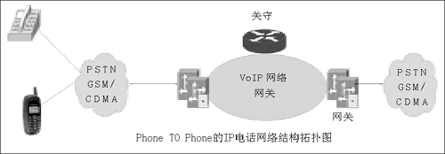 雖然從方式上看,IP話音業(yè)務包括了Phone TO Phone、PC TO Phone及PC TO PC三種方式,但是國內(nèi)主流的IP電話網(wǎng)絡(luò)仍然是以Phone TO Phone方式進行,其網(wǎng)絡(luò)拓撲結(jié)構(gòu)如圖所示。