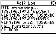 VoIP 日志顯示呼叫控制事件、QoS配置以及呼叫質(zhì)量矩陣。這一日志可以記錄呼叫建立、配置以及呼叫結(jié)束。呼叫進行中,將顯示 RTP 配置,包括IP地址和使用的端口、VLAN優(yōu)先權(quán)或服務(wù)類別和解碼信息。一旦呼叫完成,日志顯示RIP質(zhì)量矩陣,例如抖動和丟包。