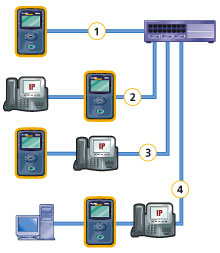 下面所顯示的四個測試位置支持包括VoIP網(wǎng)絡(luò)測試、監(jiān)測和故障診斷能力的完整的VoIP周期:在電話安裝前、電話安裝后以及將 NetTool 與電話串聯(lián)在一起。