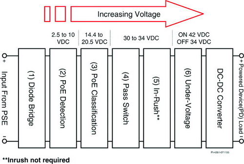 為實(shí)現(xiàn)真正的通用性,PoE用電設(shè)備解決方案必須符合 IEEE 802.3af 標(biāo)準(zhǔn)。PI 提出的用電設(shè)備簡(jiǎn)化設(shè)計(jì)已經(jīng)過 IEEE 802.3af
