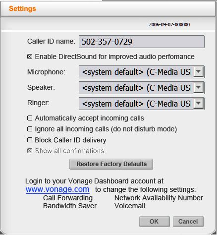 V-Phone非常易于使用。它預(yù)裝了Vonage Talk軟件。你要做的只是把它插入PC機(jī)上的一個(gè)USB插口,然后就可以撥打接聽電話了。