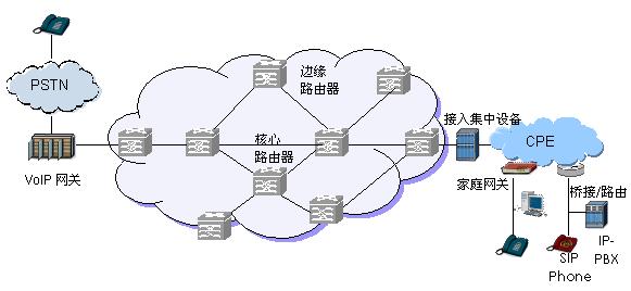 本文探討了在基于IP技術(shù)的下一代電信網(wǎng)絡(luò)中,是否有必要對VoIP實施基于資源的接納控制。根據(jù)VoIP呼叫的帶寬需求,對照具有接納控制和無阻塞情況的資源規(guī)劃方法,結(jié)合現(xiàn)階段的網(wǎng)絡(luò)資源部署情況,本文得出以下結(jié)論:1) 在IP話音專網(wǎng)中,采用接納控制機(jī)制可以大大節(jié)約帶寬需求,但在資源充足的條件下可以不必實施接納控制;2) 在多業(yè)務(wù)IP骨干網(wǎng)絡(luò)中,由于資源相對充足,而且VoIP業(yè)務(wù)的帶寬比例較小,在采用區(qū)分服務(wù)并對話音業(yè)務(wù)進(jìn)行最高優(yōu)先級轉(zhuǎn)發(fā)的前提下,不必實施接納控制機(jī)制;3) 在多業(yè)務(wù)城域網(wǎng)絡(luò)的接入和匯聚結(jié)點,話音業(yè)務(wù)所需帶寬資源所占比例不足5%,盡管接納控制機(jī)制可以適當(dāng)節(jié)約帶寬,改善用戶體驗,但采用靜態(tài)帶寬配置的方法有利于降低設(shè)備和運(yùn)營成本。圖1 VoIP承載網(wǎng)絡(luò)體系架構(gòu)示意圖