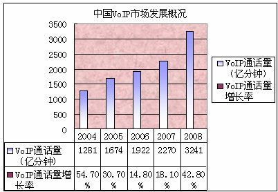 到2006年,中國IP電話的市場已經(jīng)到達了1922億分鐘,市場的發(fā)展可謂如火如荼。龐大的市場吸引了國內(nèi)很多公司的參與, VoIP市場也變得越來越激烈。VoIP市場主要呈現(xiàn)以下的發(fā)展趨勢: