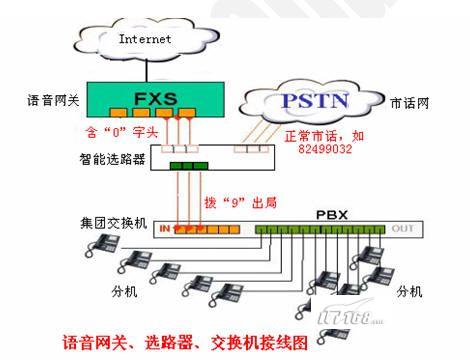 使用網(wǎng)關(guān)電話打國(guó)內(nèi)/國(guó)際其他普通公話或手機(jī),稱(chēng)為“點(diǎn)對(duì)面模式”。在使用智能路由選線器以后,打出電話時(shí)自動(dòng)根據(jù)首位字頭,例如“0”,判斷選擇市話或者VOIP專(zhuān)線通話,--字頭有“0”,時(shí)自動(dòng)走VOIP網(wǎng)絡(luò)線路,字頭沒(méi)有“0”時(shí),選擇走通常的市話線路,完全不改變我們過(guò)去使用電話的習(xí)慣!