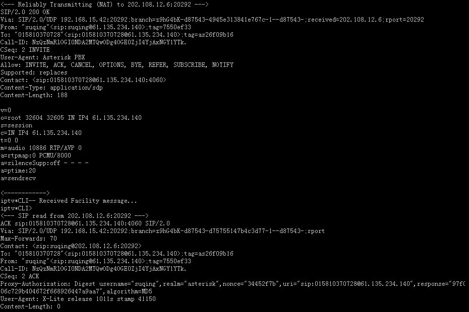 Asterisk PBX 針對(duì)上面的分析情況,響應(yīng)X-Lite會(huì)話繼續(xù)下去: