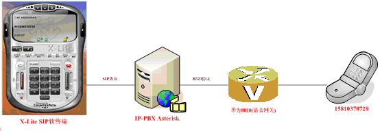 1.VoIP軟終端X-Lite,對(duì)應(yīng)圖4-1的PC PHONE:PC用戶使用SIP軟終端(目前只使SIP協(xié)議作為輸入信令)訪問IP-PBX服務(wù)器軟交換后臺(tái),對(duì)普通座機(jī)或手機(jī)發(fā)起呼叫,實(shí)現(xiàn)PC2Phone的通訊。