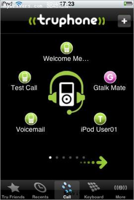 互聯(lián)網(wǎng)電話公司Truphone公司最近在App Store放出了其免費的音樂程序,這款程序可以讓iPod Touch的用戶互相之間通過WiFi連接撥打或接聽VoIP電話,并可使用Google