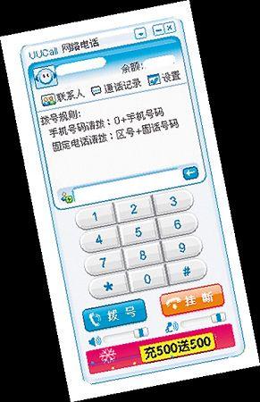 與傳統(tǒng)電話相比,UUcall的價格頗具吸引力。據(jù)了解,電腦使用該軟件并充值后,撥打全球任意手機(jī)、座機(jī),最低話費(fèi)為0.06元/分鐘,國內(nèi)長途0.12元/分鐘,國際長途至美國0.22元/分鐘。低廉的價格使UUcall等網(wǎng)絡(luò)電話擁有一大批在海外、異地求學(xué)、工作,且電話往來頻繁的客戶群。