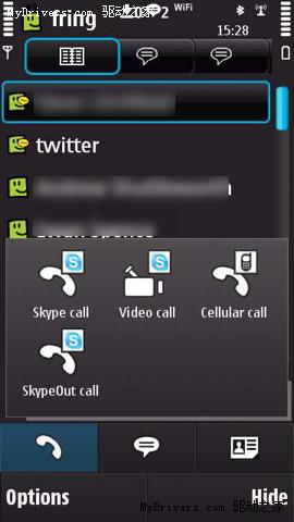 Fring是一款免費的手機VoIP軟件,用戶可以使用這款軟件通過3G、EDGE、GPRS或WiFi連接網(wǎng)絡(luò),把Skype、MSN Messenger、Google Talk及ICQ等即時通訊系統(tǒng)中的好友整合到一個好友列表中,然后和他們打VoIP 電話或進行即時通信。今天Fring宣布開始支持Symbian智能手機使用該軟件和好友進行視頻通話功能。驅(qū)動之家
