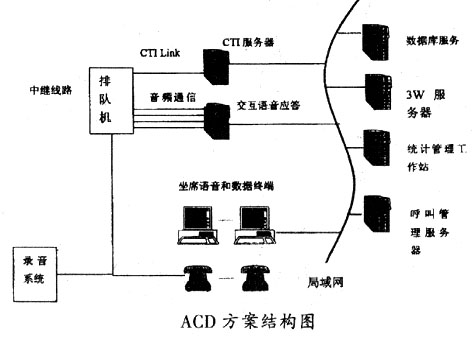 ____提供ACD方案的廠商傳統(tǒng)上是生產(chǎn)程控交換機的廠商。80年代以來,交換機廠家采取 了以下發(fā)展策略:在增強路由能力的基礎(chǔ)上開放交換機的控制接口,以標準的軟、硬件格 式提供CTI-Link,集成成熟的語音產(chǎn)品作為語音服務(wù)平臺。因此,ACD方案走的是一條基于 CTI-Link標準、專業(yè)通信和計算機廠家利用各自優(yōu)勢分工合作的路。