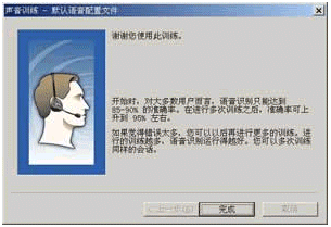 當(dāng)你15分鐘的訓(xùn)練全部結(jié)束后,將會看到如圖12所示的對話框,此時原來默認的用戶配置文件將用剛才所收集的訓(xùn)練數(shù)據(jù)進行更新,稍候片刻,你就會看到如圖13所示的對話框,告訴你語音訓(xùn)練已經(jīng)結(jié)束。