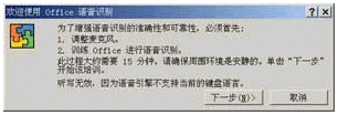 一般情況下,我們最好在語音識別功能安裝結(jié)束后立即按照系統(tǒng)提示單擊"下一步"對語音識別功能進行訓(xùn)練,整個訓(xùn)練過程包括調(diào)整麥克風(fēng)和訓(xùn)練Office進行語音識別兩部分(如圖3所示)。