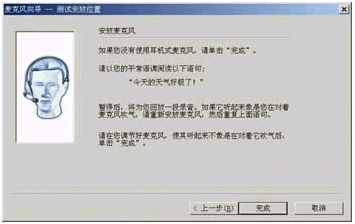 。2)現(xiàn)在你看到的是"安放麥克風(fēng)"對話框(如圖5所示),如果你沒有使用頭戴式麥克風(fēng),那么就可以點擊"完成"按鈕。