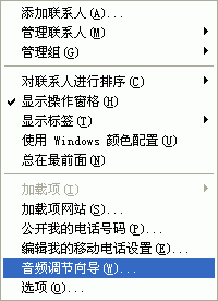 同樣,首先你應(yīng)該在MSN Messenger中調(diào)節(jié)你的音頻和視頻設(shè)備。選擇工具->音頻調(diào)節(jié)向?qū)?圖8)就會(huì)彈出“音頻和視頻調(diào)諧向?qū)А钡拇翱?圖9),請(qǐng)根據(jù)這個(gè)向?qū)У奶崾,一步一步進(jìn)行測(cè)試和調(diào)節(jié)。