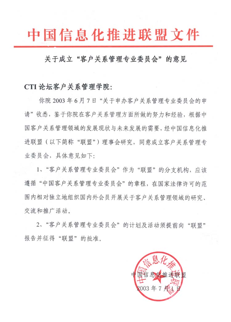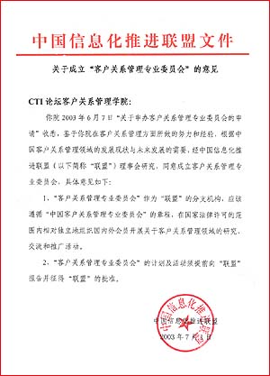 近日,由中國(guó)移動(dòng)、中國(guó)網(wǎng)通、中國(guó)聯(lián)通、海爾集團(tuán)、聯(lián)想集團(tuán)、摩托羅拉、微軟、CTI論壇等20多家單位發(fā)起籌備的"中國(guó)客戶(hù)關(guān)系管理專(zhuān)業(yè)委員會(huì)"(以下簡(jiǎn)稱(chēng)專(zhuān)委會(huì)),經(jīng)信息產(chǎn)業(yè)部中國(guó)信息化推進(jìn)聯(lián)盟的批準(zhǔn),正式在京成立。