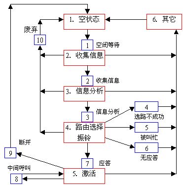 以上步驟是正常情況的呼叫處理過程,而呼叫往往因出現(xiàn)異常而不能順利地進行,如主叫在通話前中途掛機、久不撥號、被叫忙、被叫久不摘機等都屬于異常情況。