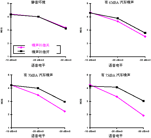 圖3 在噪聲補償功能上的MOS測試顯示出用戶感覺到話音質量變化的明顯增加;