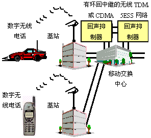 為了確保在一個(gè)本地?zé)o線到無線呼叫中包含有Studio Sound功能,回聲抑制器必須安裝在兩個(gè)附加位置之一。對(duì)于使用5ESS交換機(jī)的CDMA或TDMA移動(dòng)交換中心,這是通過環(huán)回中繼實(shí)現(xiàn)的,兩個(gè)回聲抑制器背靠背安裝在MSC內(nèi)交換機(jī)的兩個(gè)中繼上。對(duì)于GSM網(wǎng)絡(luò),回聲抑制器可以安裝在A接口上也就是MSC和基站之間的鏈路上,這些配置中的每一個(gè)都允許本地?zé)o線呼叫的兩側(cè)都獲得完整的Studio Sound功能集的好處。
