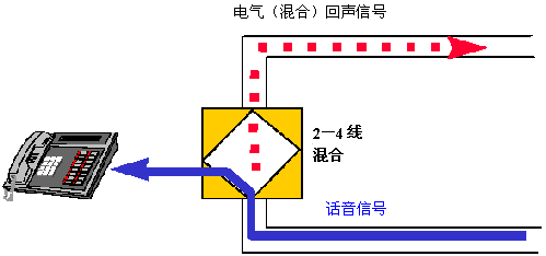 回聲消除器首先是在為長途應用而設計的網絡中引入的。長途應用中包含過量的傳播延遲,這種現象突顯出了將雙線連接轉換為四線系統(tǒng)的混合線路的不完整性。這種混合線路的不完整性被描述為"信號泄漏"或因阻抗失配而導致的信號反射,稱為網絡電氣回聲(也稱為混合回聲)。在圖1中,描述了這種現象。