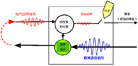 符合ITU G.168(2000)標準的回聲消除器能夠消除電氣(混合)回聲。這類設備在其運行當中采用了"兩段式"方法。在第1階段,使用線性卷積處理消除了大部分回聲。在第2階段,采用了非線性處理器(NLP)以消除殘存的回聲,這一部分相對較小。對殘存回聲信號的辨識是一件很簡單的任務,這是因為它的功率電平明顯低于原始的語音信號。