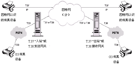 在T.37術(shù)語中,因特網(wǎng)傳真(Ifax)設(shè)備能夠通過一個出站設(shè)備向傳統(tǒng)連接到PSTN的傳真機發(fā)傳真,或者通過一個IP網(wǎng)直接發(fā)送到另一個因特網(wǎng)傳真(Ifax)設(shè)備。