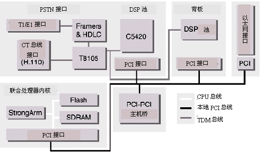 通用端口的AG系列平臺集合了以下接口或功能:電話接口,一個由眾多DSP芯片組成的板上控制器用于支持G3傳真功能,語音和DTMF處理,呼叫接續(xù),CT總線(H.100)或MVIP總線交換。AG2000(8端口環(huán)路中繼或DID,或者是它們的組合)。AG4000-T1(24-96端口),以及AG4000-E1(30-120端口)可以插在同一個PCI(或Compact PCI)插槽上。