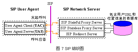 SIP包含兩個基本組件:SIP用戶代理(SIP user agent)和SIP網(wǎng)絡(luò)服務(wù)器(SIP network server)。SIP通信將在這兩種組件進(jìn)行。如下圖7所示: