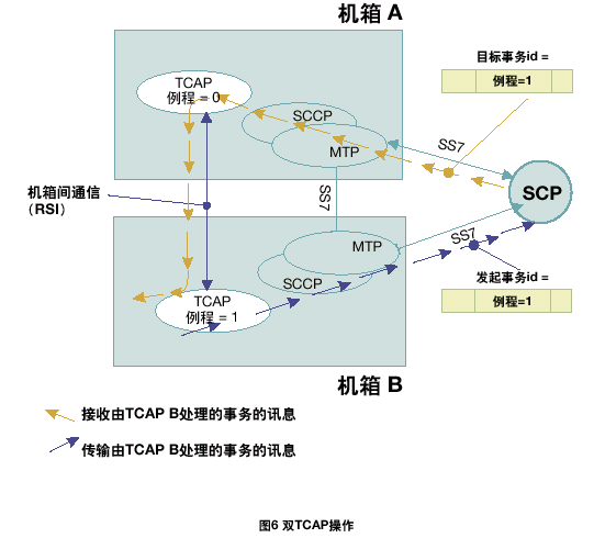 每個(gè)TCAP將所有接收的信息傳遞到同機(jī)箱中的TCAP用戶(hù)任務(wù)中。根據(jù)每一個(gè)TCAP中不同的應(yīng)用層或用戶(hù),將TCAP層的本地應(yīng)用程序發(fā)送的傳送會(huì)話(huà)和組件原語(yǔ)傳遞給正確的TCAP。在雙系統(tǒng)環(huán)境中,接收訊息可以在任何MTP和SCCP層上共享;因此,一個(gè)TCAP層接收由其它TCAP處理的應(yīng)用在激活事務(wù)上的TCAP訊息是可能的。