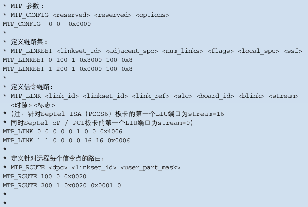 每一目標(biāo)路由(包括相鄰節(jié)點(diǎn))都應(yīng)該指明兩個(gè)鏈路集。主要的是連接本地MTP到相鄰節(jié)點(diǎn)的鏈路集的標(biāo)識(shí)符。參數(shù)應(yīng)該用來(lái)表示連接共享一個(gè)本地點(diǎn)代碼的兩個(gè)MTP3層的鏈路集。參數(shù)應(yīng)該設(shè)為0x0001,表明第二個(gè)鏈路集已經(jīng)被指定,并且只有在通過(guò)主要鏈路集無(wú)法路由到目標(biāo)節(jié)點(diǎn)的情況下,才可使用這個(gè)鏈路集來(lái)路由傳輸流量。所有其它參數(shù)的含義都與用戶(hù)手冊(cè)中描述的單MTP設(shè)置中的參數(shù)相同。