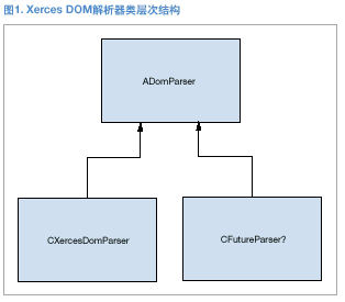 Xerces DOM解析器對(duì)象的類層次結(jié)構(gòu)非常類似于其它CSF電話網(wǎng)絡(luò)、數(shù)據(jù)通信或語音設(shè)備。抽象的DOM解析器設(shè)備包括實(shí)施任何類似解析器的有用狀態(tài)信息和基本數(shù)據(jù)及方法。具體的XercesDOMParser類出自于抽象類,并提供了針對(duì)特定Xerces解析器的具體方法和數(shù)據(jù)。其它類似的DOM解析器如果添加到CSF,也可以基于同樣的抽象類進(jìn)行構(gòu)建。圖1詳細(xì)描述了該類層次結(jié)構(gòu)。