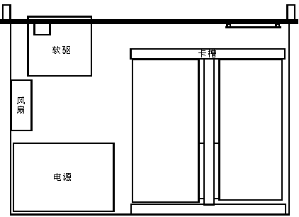 DSC110由若干水平插在卡槽兩側(cè)的板卡構(gòu)成,卡槽固定在機(jī)箱的底部的后側(cè)。冷卻扇、硬盤、電源、軟盤驅(qū)動器和前端面板顯示卡都固定在機(jī)箱上。