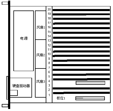 DSC210機(jī)箱包括具有20個插槽的無源主板,同時還有一個電源模塊、軟盤驅(qū)動器、風(fēng)扇電源分配器、錯誤檢測模塊和一個前面板顯示卡。