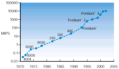 1 圖4顯示了處理器處理能力隨時(shí)間的增長而快速增長,以證明摩爾定律。