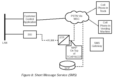 TCAP通過(guò)SS7網(wǎng)絡(luò)傳輸面向事務(wù)處理的數(shù)據(jù)并為諸如GSM-MAP和IS-41的應(yīng)用實(shí)施標(biāo)準(zhǔn)遠(yuǎn)程操作服務(wù)單元業(yè)務(wù)。這些"應(yīng)用"提供智能網(wǎng)絡(luò)業(yè)務(wù),比如歸屬位置寄存器或者短消息服務(wù)。